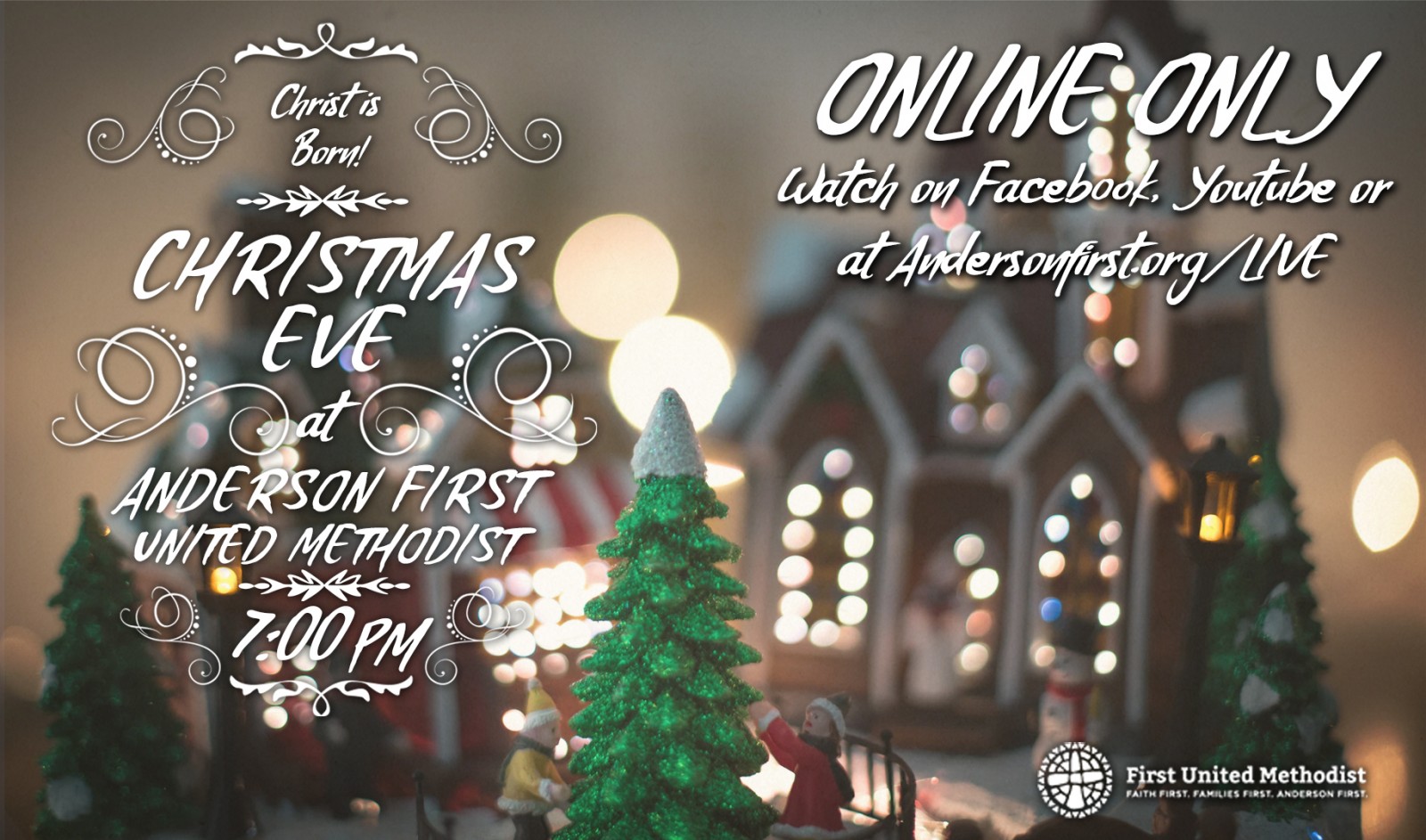 We hope that you’ll join us online for this year’s Christmas Eve service. The service will be pre-recorded and will feature music, reading, and a message to help you celebrate the birth of Christ. You can watch on Christmas Eve via Facebook, YouTube, or our website!